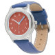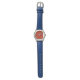 Seu filho mostrará bom gosto e um toque de patriotismo vestindo este relógio ousado com um rosto vermelho, banda azul e números brancos.