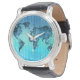 Relógio De Pulso Mapa Mundial | Tiras azuis de Neon