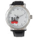 A palavra Mau e um coração vermelho sob a palavra e virado de cabeça para baixo. Camisas engraçadas, presentes, impressões, lembranças por diversão e bom humor. Sinta-se à vontade para visitar a loja de fontes de presentes mais engraçados. Curioso relógio de pulso.