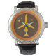 Relógio De Pulso Meio século Brown retro e avião alaranjado