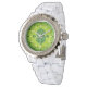 Adicione suas próprias iniciais a este rosto de relógio personalizável. Um belo gráfico de dólar sobre um fundo verde-gradiente de espiral, com padrão verde, realmente faz este relógio sobressair. Indicadores de horas numerados com divisões minúsculas o tornam funcional e fácil de ler. Parece excelente, divertido de vestir e faz uma ideia de presente única e personalizável para um excelente.