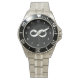 Procurando um presente de excelente para o geek em sua vida? Este relógio de pulso de matemática é perfeito. Apresentando um símbolo branco infinito no centro em um quadro preto de fundo, este relógio certamente agradará ao entusiasta matemático. Copyright Kathy Henis
