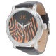 Relógio De Pulso Monograma de Laranja e Zebra Negra