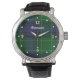 relógio de pulso da pulseira de couro na moda, com o clássico clã azul, verde e branco Abercrombie tartan, na face, com números brancos e pontos durante as horas. O texto personalizado branco lê Abercrombie, e pode ser personalizado para ler o que você quer.