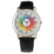 Vintage moderna e elegante inspirou o relógio de roda a cores. Este cronômetro de qualidade é embelezado com um lindo padrão de rodas coloridas de uma ilustração artística do século XIX. "O Prismático" está disponível em uma grande seleção de estilo e opções de correia. O relógio de pulso "Prismático" contrasta o elegante estilo moderno do relógio de moda de hoje com uma ilustração muito, muito antiga da arte escolar. Uma declaração de moda ousada e exclusivamente artística. Governem-se em conformidade...