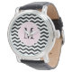 Relógio De Pulso Padrão de Chevron Preto e Branco