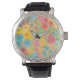 Relógio De Pulso Padrão floral de aquarelas em amarelo