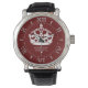Relógio De Pulso Personalizado Mantenha Calmo Coroa Borgonha Acento