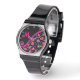 RELÓGIO DE PULSO PINK FUCHSIA BLACK ABSTRATO DECO MONOGRAMA