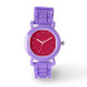 Você mostrará seu bom gosto se comprar este relógio brilhante com uma face vermelha profunda e números prateados.