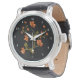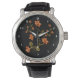 Relógio de pulso preto com padrão floral de lírios