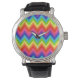 Um padrão brilhante do arco-íris decora este relógio divertido. O design é da arte original.