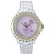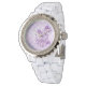 Belo Relógio de Rosto com Retinestone Branca, com nosso Design de Rotação Floral Roxo Verificado - Imagens Licenciadas e Copiadas pela Fábrica de Gráficos