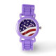 Mostre seu patriotismo com seu relógio com esta ilustração de estrelas e listras em vermelho branco e azul representando a bandeira americana.