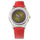 Este rosto de relógio foi projetado para dar a vocês a ilusão do movimento. As cores estão em alto contraste e parecem que o rosto está girando. Todas as cores são metálicas (ouro, vermelho, azul e violeta) em um campo preto. Não há horas marcadas no rosto. Disponível em todos os estilos e cores.