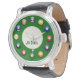 Este relógio apresenta um conjunto de bolas de piscina numeradas coloridas, marcando o tempo de 1 a 12 em volta da circunferência do relógio, em uma cama verde. Há um círculo interior de bege com um marcador de posição de texto para o seu nome. Selecione um estilo de observação diferente com as opções personalizadas.