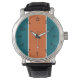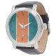 Combinando cor e estilo, este relógio apresenta números pretos sobre um fundo aqua, laranja e listrado branco. Você definirá o padrão para a moda sempre que vestir deste relógio.