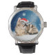 Relógio De Pulso Um gato bonito vestindo o Papai Noel vermelho e a