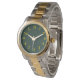 Você mostrará seu bom gosto vestindo este relógio verde escuro com números dourados.