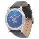 Um clássico relógio de couro preto mostrado com uma impressão de foto de tubarões no mar profundo. Escolha esta monitorização a partir de vários estilos. Personalize este relógio ou comprar como está. Imagem do stock