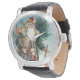 Um belo relógio de vintage com Papai Noel andando pela neve.