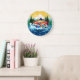 Wall Clock, Moldura de madeira branca redonda de 25,4 cm