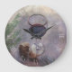 Uma pintura digital de efeito antigo de um copo de vinho tinto, algumas trevas de alho, rosmaninho e galinheiro - uma delícia culinária! Disponível como um relógio redondo ou quadrado, este seria excelente para a cozinha de um chef sério. Com um relógio em algarismos romanos brancos.