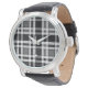 Relógio Design de Tartan Xadrez Flannel Branco preto