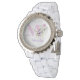 A Design de observação apresenta o Nome e o Nome Iniciais do recipiente juntamente com Flores pintadas em um estilo de cor de água pastel. Altere o nome e a inicial para se adequar à pessoa para a qual o relógio serve.