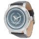Design monograma com decoração de soleira em forma redonda em forma de striped sobre fundo azul