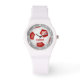 Este relógio temático de futebol esportivo apresenta um gráfico simples de bola de futebol sobre o qual você pode personalizar o nome do atleta e o número de camisa - os painéis pretos da bola de futebol foram recoloridos em vermelho - o fundo é uma cinza de luz personalizável com gráficos de acentos líquidos de gol e números de rosto do relógio branco - de katz_d_zynes