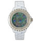 Um estilo vibrante e colorido de pavão penetra decor gráfico num belo relógio personalizado de moda. Introdução
