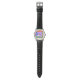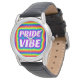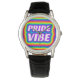 Celebre a diversidade e a inclusão com esta vibrante design, com "PrideVibe" cercada por um espectro de cores do arco-íris. As matizes radiantes contrastam maravilhosamente com a elegante tira preta de couro, criando uma peça ousada que incorpora unidade, amor e individualidade. Perfeito por mostrar seu Orgulho durante o ano com um relógio na moda e colorido.