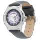 Personalize o relógio desportivo moderno deste miúdo com iniciais editáveis. Design é um gráfico circular no centro com detalhes roxos e pretos e brancos. Basta editar as letras no editor fácil do Zazzle. Muitas outras opções de estilo bezel e banda disponíveis para selecionar para personalizar ainda mais para torná-lo um presente para uma criança.