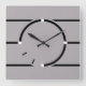 Um relógio quadrado muito moderno em cinzas com linhas pretas no estilo Art Deco.