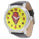 Legal relógio do pulso do diabo vermelho. Príncipe escuro legal, retrô e quadril do relógio submundo sobre fundo amarelo brilhante.