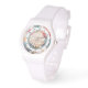 Um relógio feminino muito florescido com cores doces. A modernidade vem da separação dos padrões da dália em duas partes: uma coroa externa e o disco interno. Entre eles estão os números, lindamente escritos em uma tipografia moderna semiaberta do trabalho. Um presente perfeito para todas as mulheres!