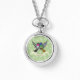 Um relógio feminino com duas amigas coloridas de beija-flor debaixo das outras asas, talvez fazendo uma canção de canto no caminho de casa depois de um dia divertido no néctar. Adequado a temas de parceria e amizade, você pode personalizar a design com uma rápida mudança no texto padrão. Personalize ainda mais mudando a cor de fundo; a repetição floral aparecerá como um tom mais leve da cor escolhida. Desenhado em estilo cartoon, mas com base na "safira de cauda-ouro" (à direita), que é uma mistura de azuis e verdes iridescentes com uma abertura de laranja e amarelo na cauda; e "beija-flor de cauda-larga" (à esquerda), que são verdes com uma mama de creme e uma garganta rosa ou vermelha gritante, e penas brancas na cauda .