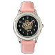 Personalize este relógio para a sua princesa favorita com suas próprias iniciais ao lado de uma coroa dourada cintilante impressa no rosto do relógio. Mostrado aqui em rosa e preto, mas você terá muitas outras cores de correias e estilos de bezel para personalizá-lo ainda mais. Excelente aniversário ou presente de Natal.