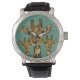 Relógio Dourado Damask Girafas Floral Retro Watch