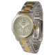 A face do relógio é projetada para combinar o ouro e a prata na faixa de relógio. Fundo gráfico com padrão de diamante, com aparência emboscada e texturizada em números. Com balas de estrelas representando os oito números restantes. Tudo em tons de ouro e branco.