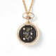 Marcadores e teclas antigas com engrenagens de ouro e latão, decoradas com libélulas mecânicas e boias em fundo castanho e listrado.