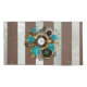 Relógio antigo e patenteado, adornado com joias, mãos de ouro e algarismos latinos com rosa de turquesa sobre fundo castanho e listrado. Estilo Steampunk.