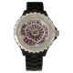 Relógio Elegância do Eterno Rinoestone Floral Roxo 3D