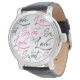 Acessório com charme usando este relógio de na moda, com um padrão romântico preto e rosa com as palavras "Amor" e "Doce" repetidas ao longo do tempo. Perfeito para o veste do dia a dia ou como um presente sincero para o Dia do Namorados ou aniversários, este relógio combina a elegância moderna com um toque de brincadeira, fazer funcional e moda.