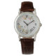 Um clássico relógio de senhoras com elegantes pastéis de aquarela ainda é arte viva impressa em fundo de platina. Altere ou retire facilmente as iniciais do monograma utilizando o Modelo fornecido. Concebidos com a precinta de couro marrom em relevo crocante e estampada com uma caixa de liga prateada. Há 15 estilos disponíveis, quatro deles superdimensionados. Japão Quartz® analógico de três mãos. Consulte "Sobre este produto" na lateral para obter especificações detalhadas sobre tamanhos, materiais, tipo de fechamento e garantia.