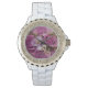 Este é um Elegante "Um dos tipos", rosa e roxo Rose Bouquet Women's Watch! Apresenta um legante Bouquet rosa e roxo com rosas rosa claro e escuro, flores brancas e roxas. Design De Arte Original Pelo Artista Kerry Miller.