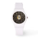 Vigia de enfermeira Chic, Black e Gold, estilo elegante e boêmico. Linda mandala floral que parece uma folha de ouro em um fundo preto. Símbolo caducius preto centrado num círculo dourado. Branca, fácil de ver os números do relógio. Trendy, estilo moderno para enfermeiro estudante ou médico. Um presente de formatura elegante para enfermeira.