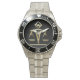 Arte Deco inspirou Escalas de Justiça são renderizadas em tons ouros em preto. com um campo de texto personalizado para seu monograma às 12:00. Junto com esta elegante banda de aço inoxidável e um bezel preto injustificável, é perfeito para o advogado, juiz, estudante de direito, assistente jurídico, etc. em sua vida!
