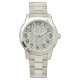Este relógio feminino tem uma design moderna do século médio de ovais cor-de-rosa conectados por linhas cor-de-rosa com círculos esbranquiçados todos num campo de verde-claro. Quer cores diferentes? Me mande mensagem.